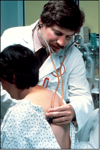 Das Abhören des Körpers mit dem Stethoskop nennt man „Auskultation“.